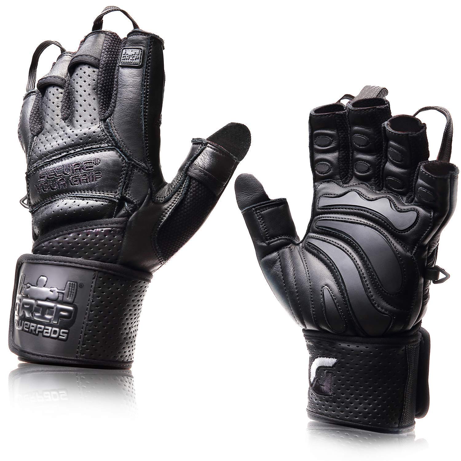 Elite Leather Gym Gloves with Built in 2" Wide Wrist Wraps Best Leather Glove Design for Weight Power Lifting Bodybuilding & Strength Training Workout Exercises (Black, 2X-Large)